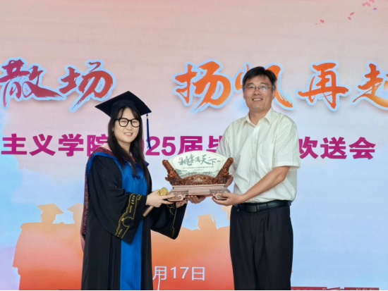 2025届毕业生向公司赠送纪念品,祝福母校桃李满天下。同学们依次饱含深情地回顾了自己在马院度过的求学时光,与老师共同分享毕业蛋糕,感谢母校的悉心培养,导师的谆谆教诲,同窗的深情厚谊。在温馨的氛围中,全体毕业生合唱《光阴的故事》,为活动画上圆满的句号。