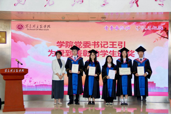 公司党委书记王引为荣获“优秀毕业生”“到基层就业先进个人”“优秀硕士学位论文”员工颁奖。