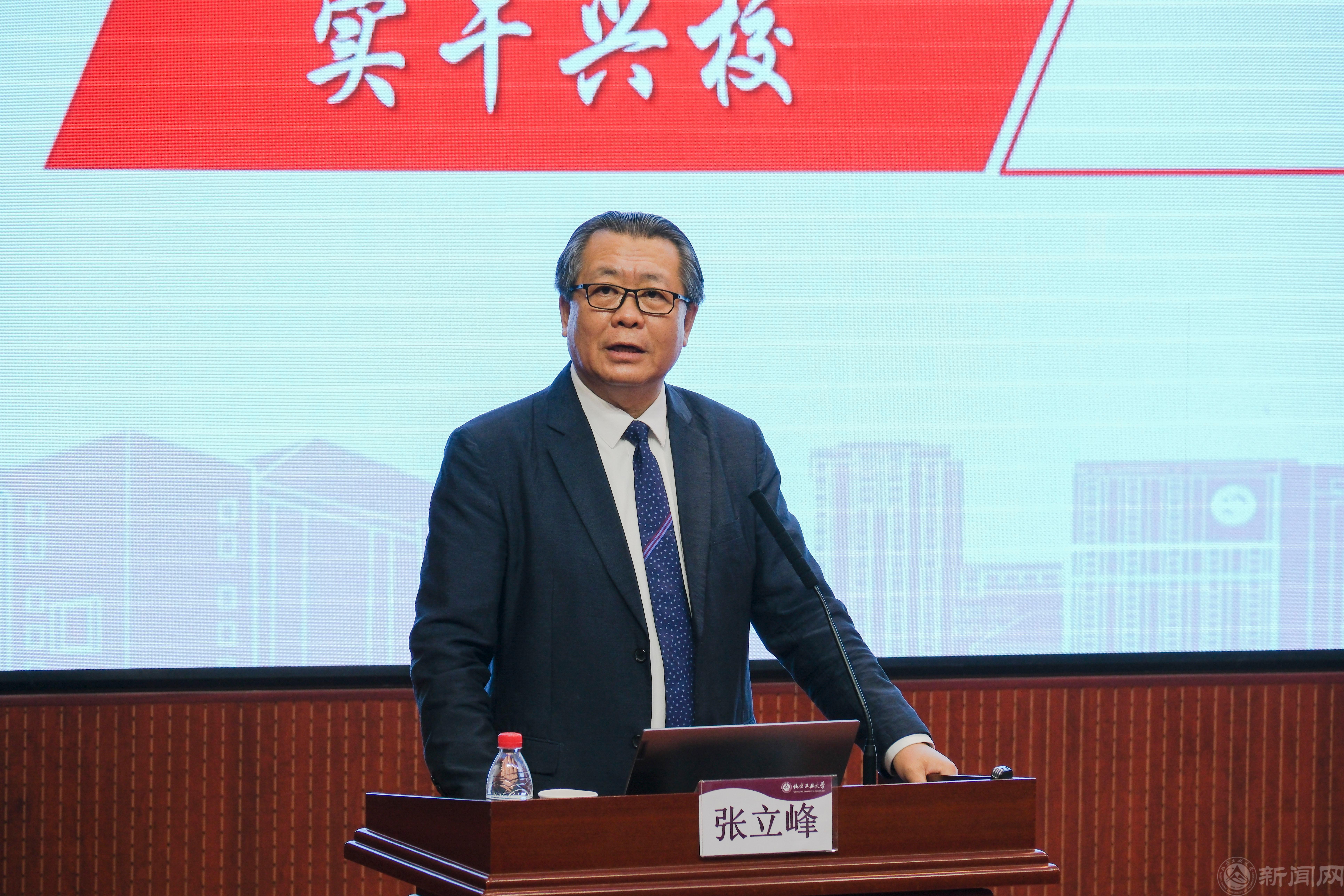 随后,张立峰聚焦中国百年钢铁工业发展史,以大量的数据和珍贵史料为依托,深入剖析中国经济崛起与工业发展之间的紧密联系。他指出,高校作为科技创新的前沿阵地,是科技高速发展的强劲发动机,更是攻克“卡脖子”难题的“主战场”。在建设科技强国的征程中,人才是第一资源,必须坚定不移地走基础研究人才自主培养之路,为国家的科技发展筑牢坚实的人才根基。他希望师生传承弘扬“兴工报国”传统,胸怀“国之大者”,将科学研究的重心放在硬核科技上,以青春之我、奋斗之我,为科技强国建设贡献北方工大力量。
